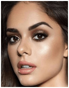 - Apply a mix of dark and light brown eye shadow on the eyes.